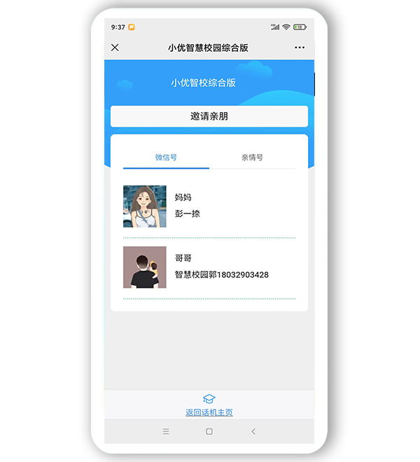 通過微信通話,呼叫家長的電話,實(shí)現(xiàn)校園親情微信視頻通話連接,建立智慧信息化數(shù)字校園。